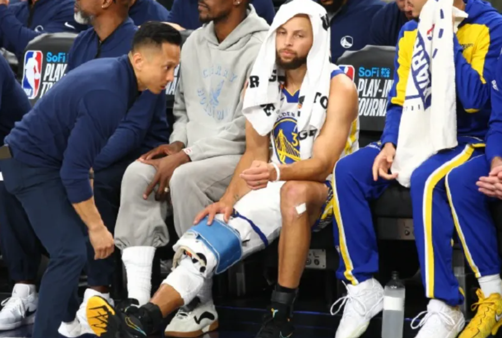 勇士队在赛前非常不被看好,他们的阵容太老了,伤病也太多了,而且库里一直受到慢性伤病的影响,能保持多少状态还不知道。在比赛进行过程中,库里时不时还要在场下接受冰敷膝盖的处理,缓解炎症带来的影响。
