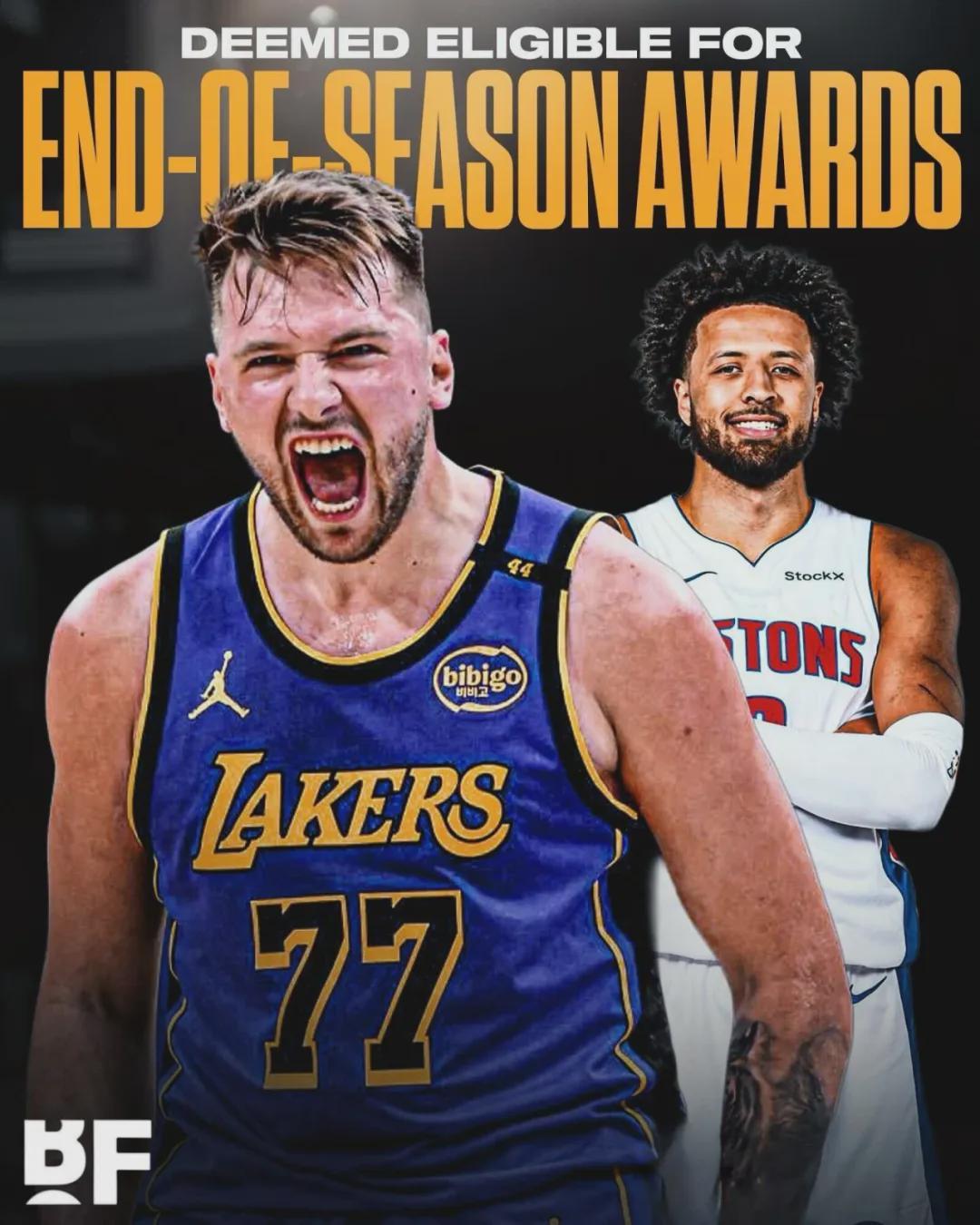 北京时间4月17日凌晨,NBA联盟和球员工会发布联合声明,湖人球星东契奇和活塞球星坎宁安申诉成功,两人均可参与本赛季常规赛所有奖项的评选!森林狼球星爱德华兹申诉失败,失去重要奖项的评奖资格,包括最佳阵容等。