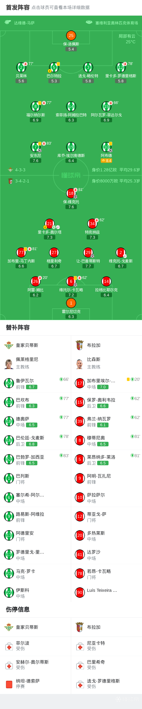第53分钟,特克纳兹造点,奥尔塔点球命中将比分反超,布拉加3-2贝蒂斯